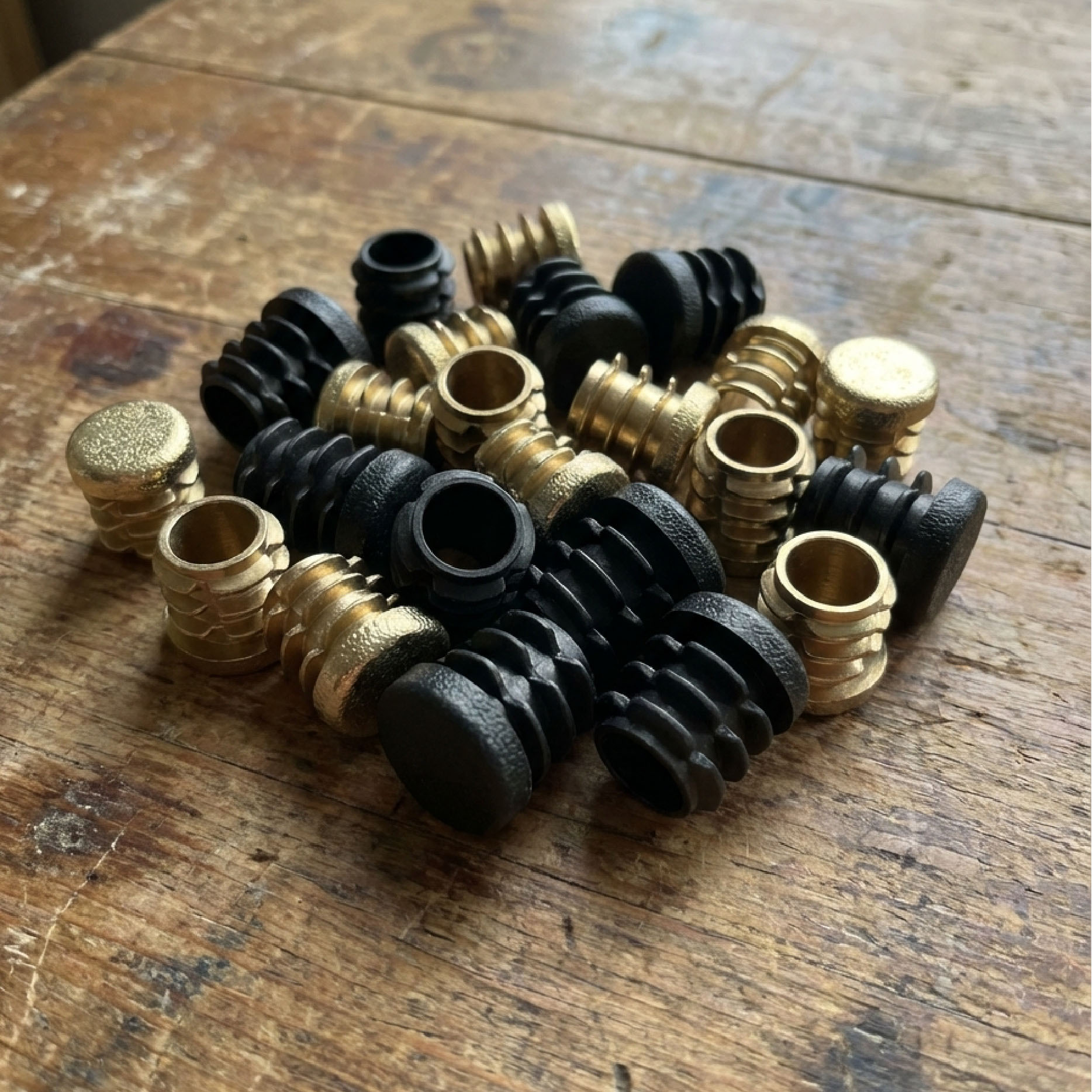 Благодаря заглушкам с регулируемой опорой столик стал выглядеть завершённо, стоять ровно и не царапать пол.
